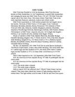 New York`s population is 19,88 million people (the 2nd largest city in the world). The Area of New York is 10’200 sqkm. It has 5 districts: Manhatan, Brooklyn, Queens, Bronx, Richmond. The outskorts of New York are: New Ark, Jersycity, Jonkers, Brigeport, paterson, Elizabeth, Stamford, Woodbridge Noevolk, Eastorange, Cliftown, New Roshel, Edison. The transport in New York: 3 airports, sea port, >60 bridges (the longest – 4820m), 4 car tunnels (all toll), subway (total lenght 385km).…