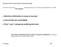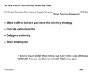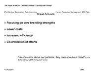 Maintaining that the corporate world is now in a period of renaissance with new technologies changing both business environments and mindsets, so organizations - including governments and the non-profit sectors - in the 21st century will need to overcome the different challenges through the empowerment of their employees and customers with no one company, country or geography holding a monopoly on ideas. It will have to rapidly adopt new technologies in order to perform more efficiently. This enables one to customize everything according to one’s needs. Technology is driving the rate of change, so there is a premium on getting it right. Before, you could be wrong, but you might have time to remedy it. Today, the market moves so quickly, that you won’t have time to catch up. Change is also obliging companies to enter into more partnerships, because they cannot do everything on their own. …