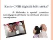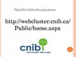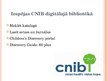 Arī tā digitālā bibliotēkas par kuru es Jums pastāstīšu ir veidota digitalizējot reālās bibliotēkas krājumus un tā ir paredzēta konkrētai mērķauditorijai. Un tā ir Canadian National Institute for the Blind jeb CNIB Digital Library