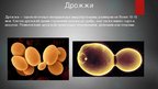 Дрожжи — одноклеточные неподвижные микроорганизмы размером не более 10-15 мкм. Клетки дрожжей своим строением похожи на грибы, они также имеют ядро и вакуоли. Размножение дрожжей происходит почкованием, делением или спорами.
