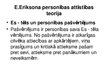Kas ir Es - tēls ? Cilvēks, atšķirībā no visiem citiem dzīviem radījumiem, ir apveltīts ar pašatspoguļošanas spēju, t. i., viņam piemīt pašapziņa. Uz pašapziņas pamata viņam veidojas zināšanas un priekšstati par savu ārējo izskatu un par savu iekšējo, psihisko pasauli. Psiholoģijā zināšanas un priekšstatus pašam par sevi bieži vien sauc par Es - tēlu. Es - tēls no vienas puses ietver priekšstatus par savu ķermeni, savām psihiskajām un morālajām īpašībām utt., bet no otras puses - sevis salīdzinājumu ar citiem.