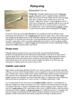 Flying wing is the generic designation given for a fixed-wing aircraft configuration which is capable of stable, controllable flight without the aid of lifting surfaces other than the main wing itself, that is, without auxiliary surfaces such as "tails" and "canards". Additionally, the term is usually applied to aircraft in which most of the payload is transported inside the main wing, the latter comprising most of its structural volume. A variation of such configuration in which a payload bearing fuselage is present is usually known by the less restrictive designation of "tailless aircraft".
